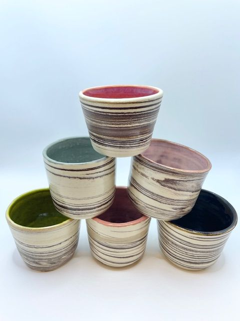 My ceramic journey began over 25 years ago. After a long hiatus, I rediscovered my love of clay and now spend many happy hours creating in my small WWII bunker—hence the name Bunkerpots.